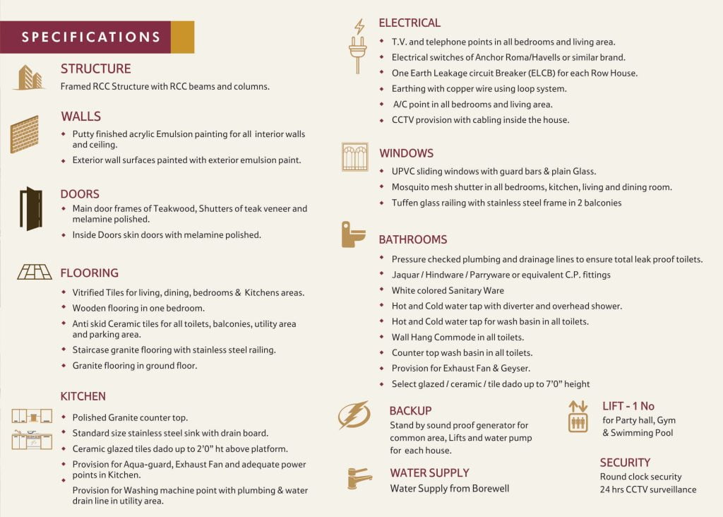 Owning these luxury Row Houses will give the home owners an escape to their own piece and feel to live without leaving the city. Find delight every morning as you wake up to lush green stretches and has ample open spaces along with a day-long natural ventilation. 4 BHK Premium Row Houses with private garden and no common wall.
